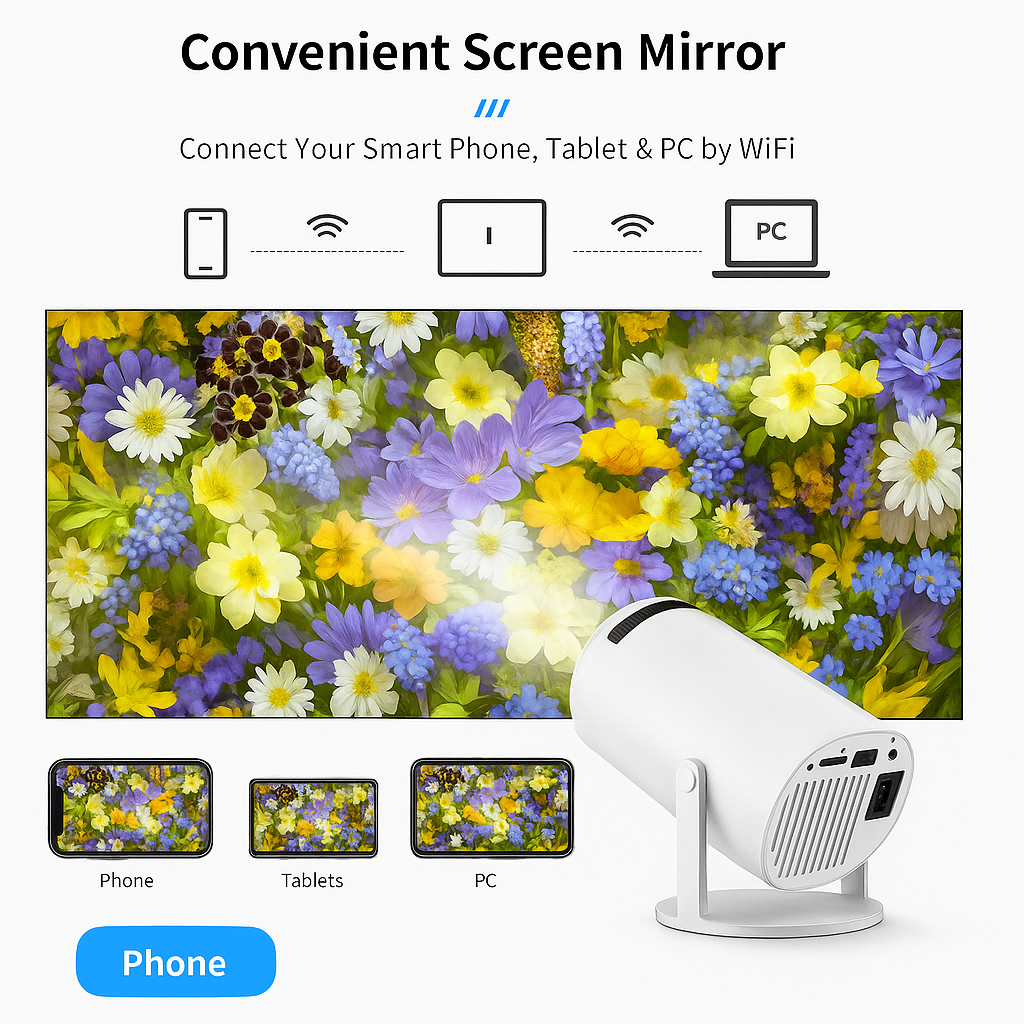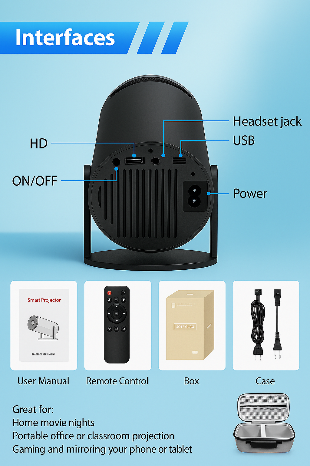Compact. Wireless. Bright. The Loumilight Mini 2K Smart Projector brings theatre-quality projection anywhere you go from dorm rooms to backyard movie nights. Designed for versatility and powered by Android 11, this ultra-portable projector delivers massive visuals in a sleek, travel-friendly build.