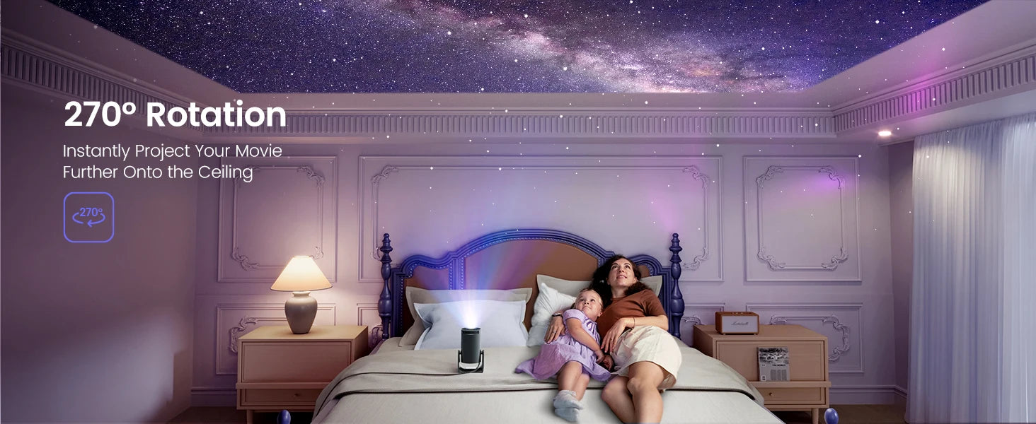 Turn any room into your personal cinema with the Loumilight Mini Projector 1080P. Compact, sleek, and ultra-portable, this projector brings stunning high-definition visuals right to your walls or ceiling perfect for movie nights at home, gaming sessions, or even outdoor camping!